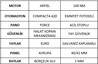 + Tüm aksasuarlar kapsama dahildir. Spesifik olarak seksiyonel ve yangın kapılarının çevresinin ilgili aksesuarlar ile kapatılması kapsama dahildir.